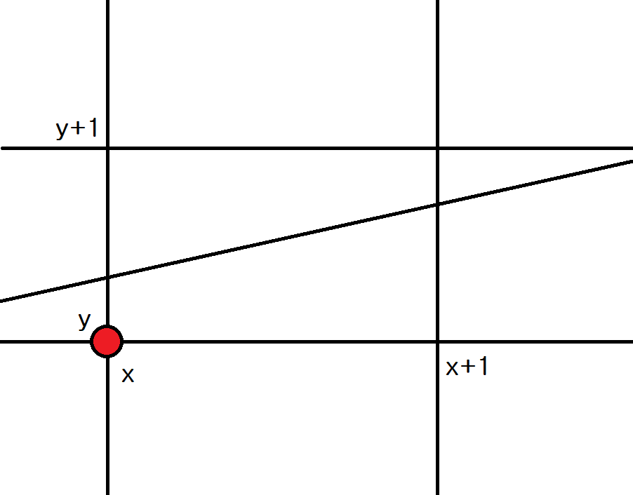 단 위의 방식은 문제가 있는데 y가 실수(정수 연산보다 심하게 수백~수천배 느리다.)이기 때문에 이 y가 실수가 아닌 정수형으로도 그릴 수 있는 방법을 찾아야한다.