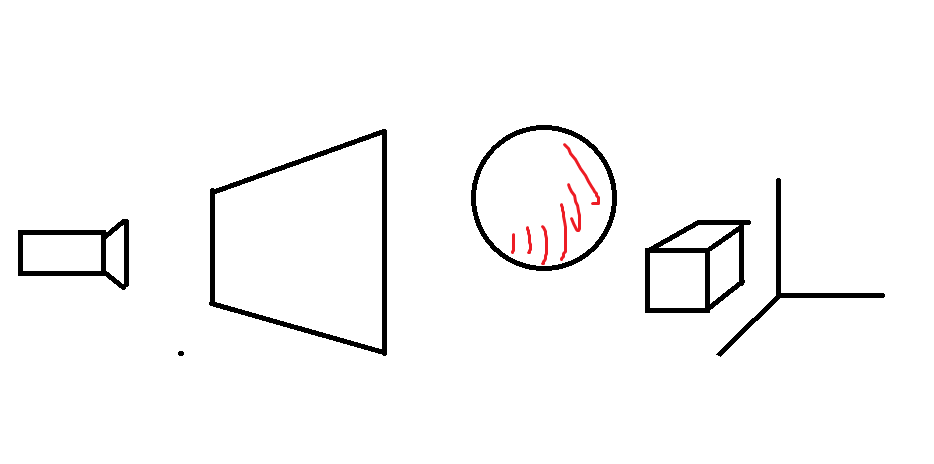 이미지라고 생각하면 사진을 생각하면 적절하다. 카메라를 두고 어떤 피사체로 가서 셔터를 내리면 사진이 찍히는 방식이다. 즉 3차원상의 물체는 다음과 같이 찍힐 것이다.